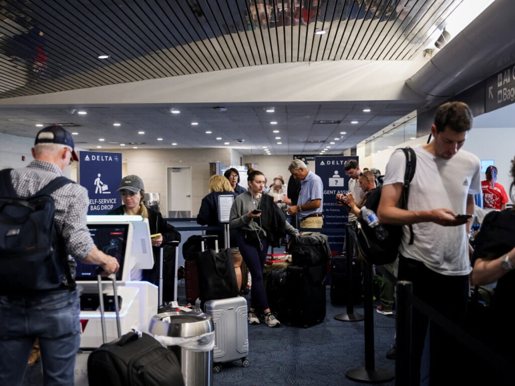 多地的機場出現混亂,擠滿乘客,排起長長人龍,航班取消或延誤,一些航空公司改用人手辦理登機手續。