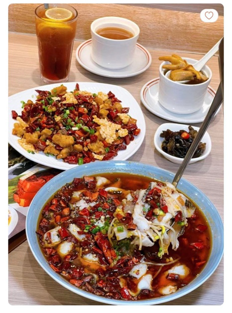 自然,楊大廚的拿手菜不單只是魚頭。 重慶是酸菜魚的發祥地,酸菜魚、水煮魚、辣子雞、麻婆豆腐等都是膾炙人口的佳餚,你點上一道他的菜,起碼二碗白飯才能滿足食欲。 楊大廚的香炒辣子雞,他加上自製的香脆鍋巴,讓辣子雞也另有風味。