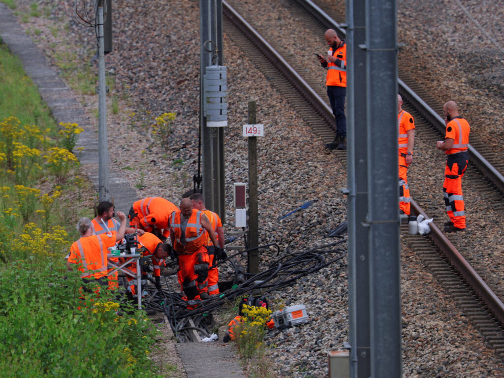 法國國鐵早前表示,上周四晚上至周五凌晨,在三個幹線方向的高速鐵路附近同時發生縱火等破壞行為,導致鐵路信號裝置、電纜等設備受損,多條高鐵線路中斷,列車大規模取消或延誤。