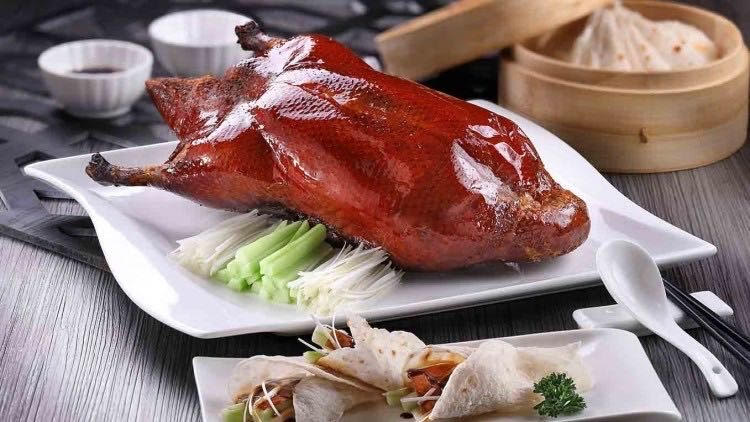 光鴨子,臨江宴就有三種吃法:燒鴨、烤鴨、香酥鴨各有特色。 烤鴨在倫敦的中餐館是主打菜,品質就各有千秋。 臨江宴的烤鴨色澤屬於淡豔的那一類,有鮮亮感。 鴨子取之愛爾蘭的雲山肥鴨,皮脆肉嫩肥瘦相間,端上桌來鴨香四溢。 你可以挑肥也能揀瘦,包上面餅夾上作料,色香味統合送入口中,一定震撼味蕾。