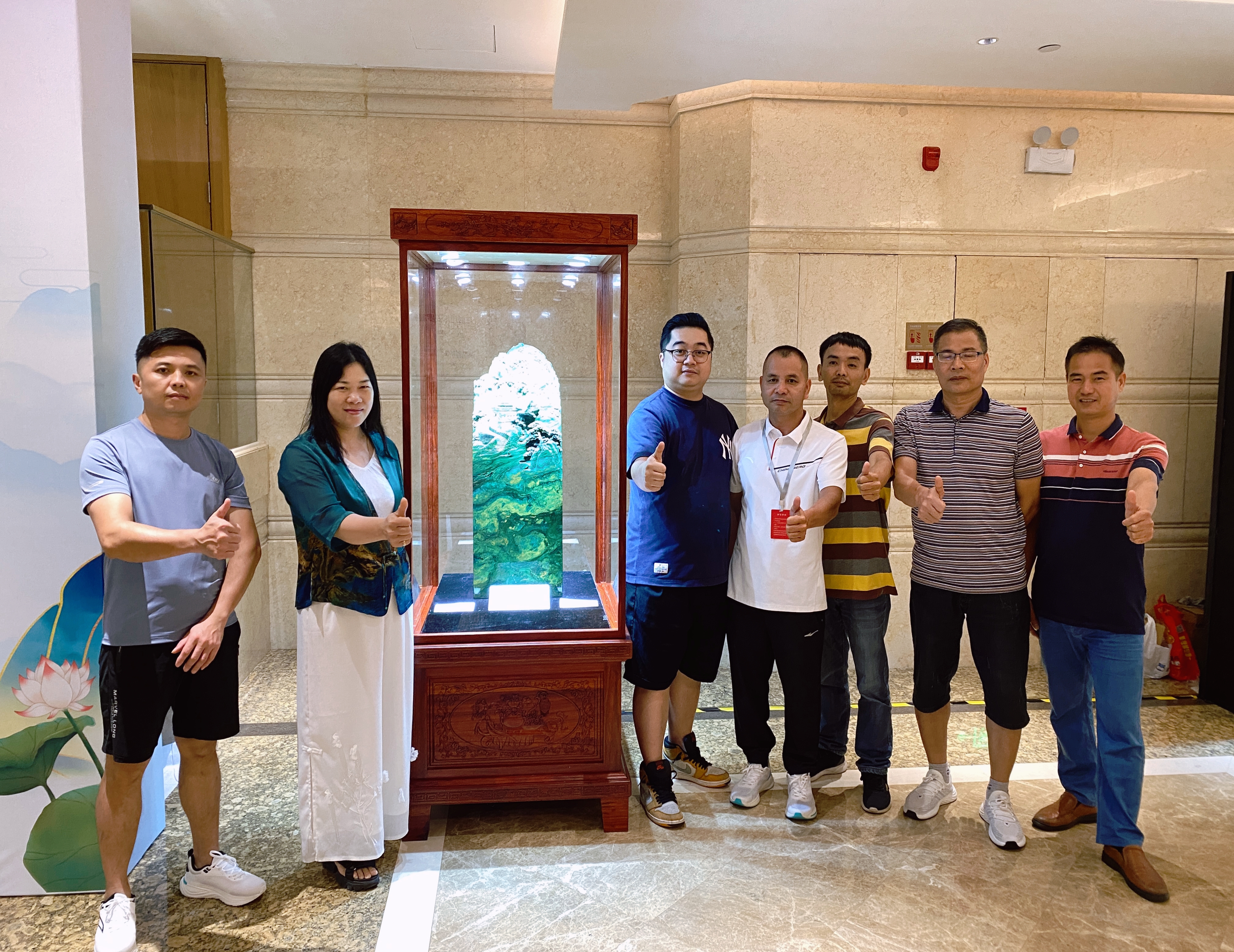 從左到右:廣東省玉器商會廣寧分會副會長、廣東省技術能手、肇慶市工藝美術師董劍勇,廣州新世紀藝術研究院代表馮少連,廣東省商會廣寧分會副會長、工藝美術師盤伯亨,肇慶工藝美術協會理事、廣東商會廣寧分會副會長、高級工藝美術師詹進運,廣東省商會廣寧分會秘書長兼會長、工藝美術師廖貴森,廣東省商會廣寧分會副會長、工藝美術師葉樹強,肇慶工藝美術理事、廣東省商會廣寧分會副會長、工藝美術師葉火城。