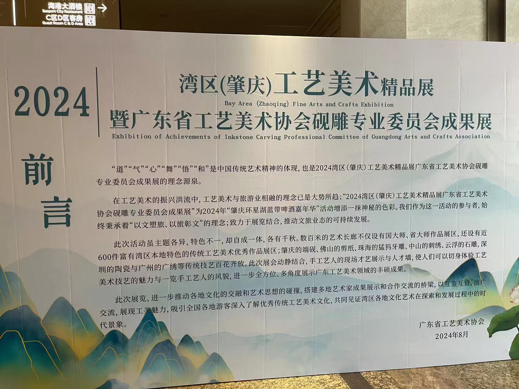 (中華新聞通訊社/中華時報8月5日訊)2024年8月3日,由廣東省工藝美術協會(硯雕專委會)和肇慶市文旅投資集團有限公司主辦的2024灣區(肇慶)工藝美術精品展暨廣東省工藝美術協會硯雕專委會成果展在溫德姆酒店正式舉辦。廣州新世紀藝術研究院代表馮少連受邀參加本次展覽。