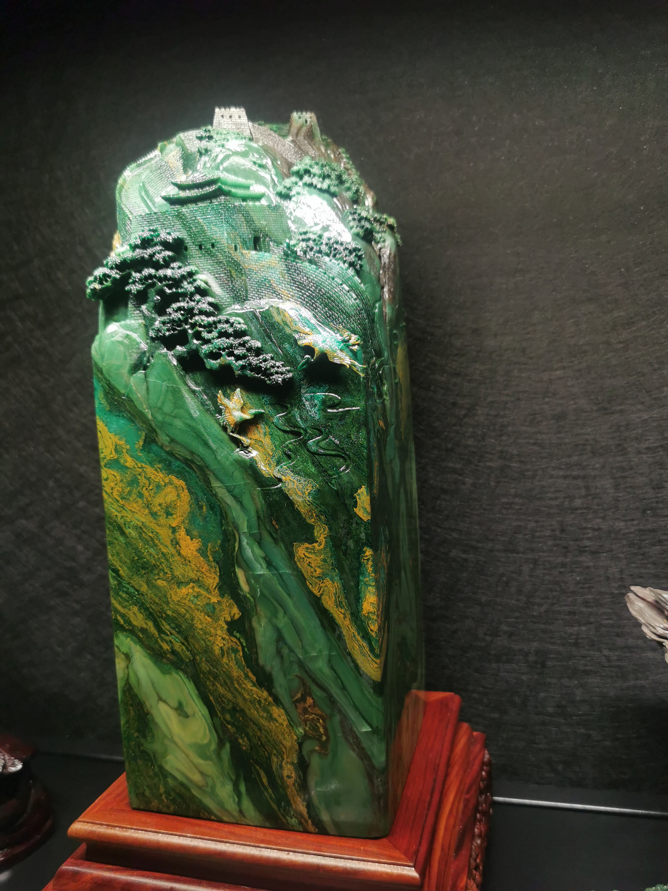 作為肇慶市廣寧縣特產的廣綠玉,是中國國家地理標誌產品,以其紋理和色彩豐富,質地細膩,溫潤而栗,具有獨特的美感和神韻,被中國寶玉石專家趙樸初先生評價為“石中瑰寶廣東綠”,贊其具有“細、潔、潤、膩、溫、凝”之“六德”。又因易於加工,以色取巧,其獨有的翠綠色調在國內玉石品種中非常罕見,廣綠玉也被認為是用來製作印章和用於篆刻的珍材。