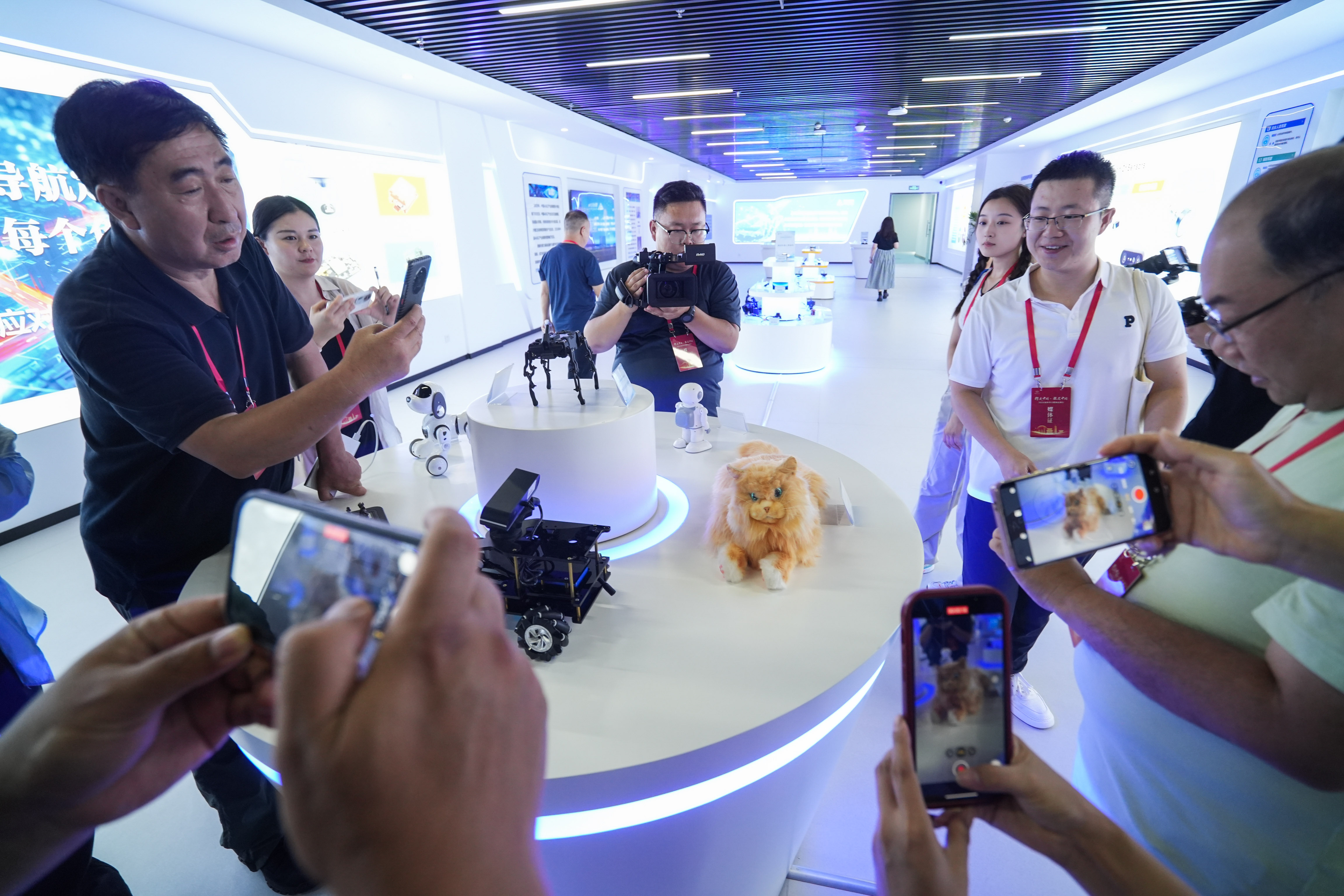 在山西智绘沧穹科技有限公司,与智能AI机器人对弈、与智能机器狗互动、抚摸拥有碧蓝眼睛与柔软毛发的仿生机器猫……这些体验让海外华文媒体频频点赞晋城的光机电产业发展。