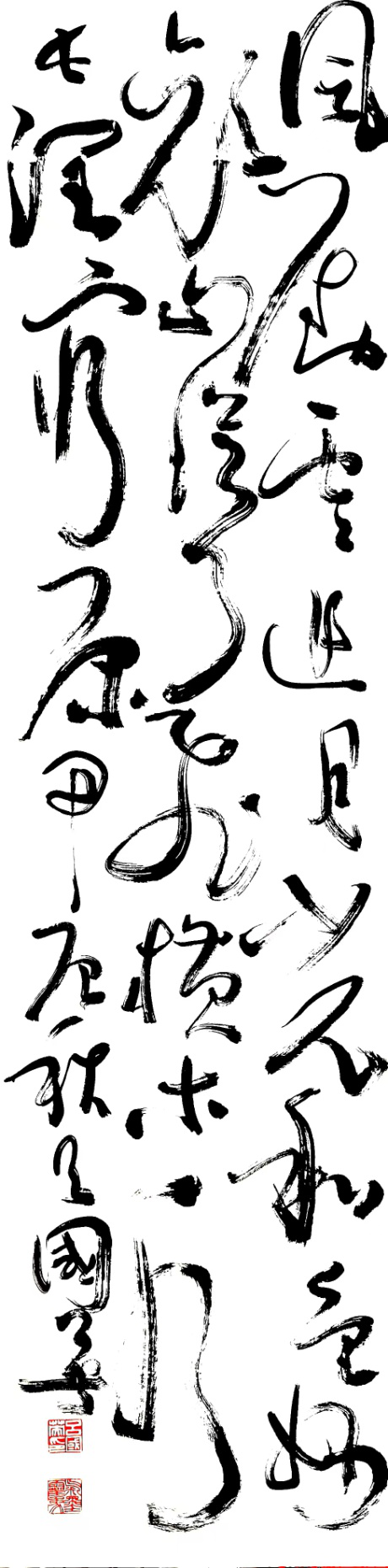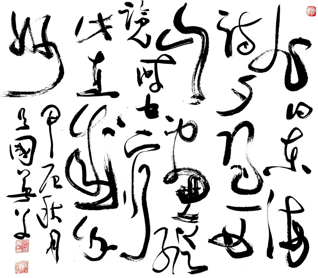 呂國英先生認為,靈草是大草的遠方。其書象建構與美學境界,既可從其原創藝術理論專著《“氣墨靈象藝術”論》中眺瞻理論高度,又可在其原創書論《“書象”簡論》中慧悟學術維度。其詩成而“草(書)”就,草就而詩顯,既舉“詩文隨世運,無日不趨新。”又彰“有動於心,必於草發。”本期選編呂國英先生幾幅(首)詩書近作,以饗讀者,並期待大家批評。