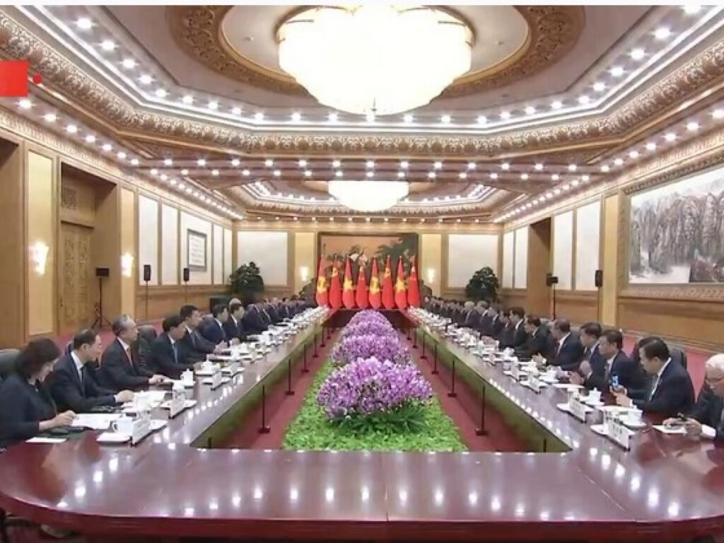 習近平稱,中方始終將越南作為周邊外交優先方向,支持越南堅持黨的領導,走符合本國國情的社會主義道路,深入推進革新開放和社會主義現代化事業。