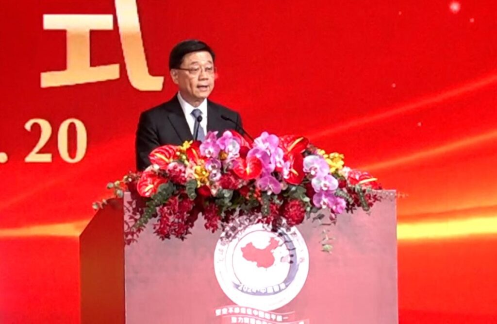 李家超:「香港回歸以來的成功充分展示了一國兩制是解決歷史遺留類似問題,促進世界和平發展的好制度,我呼籲各位香港僑界領袖和全球華僑華人,多在國際社會說好中國和平統一好故事,說好一國兩制實踐的好故事,繼續為中國和平統一大業作出貢獻。」