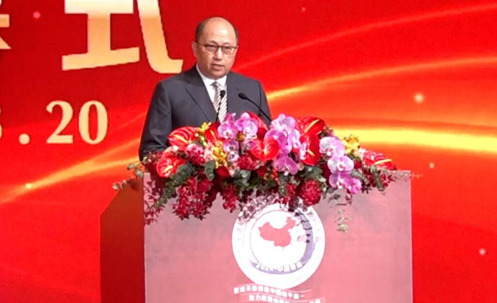 中央統戰部常務副部長陳小江在全球華僑華人促進中國和平統一大會開幕式,宣讀中共中央政治局常委、全國政協主席、中國和平統一促進會會長王滬寧的賀信。