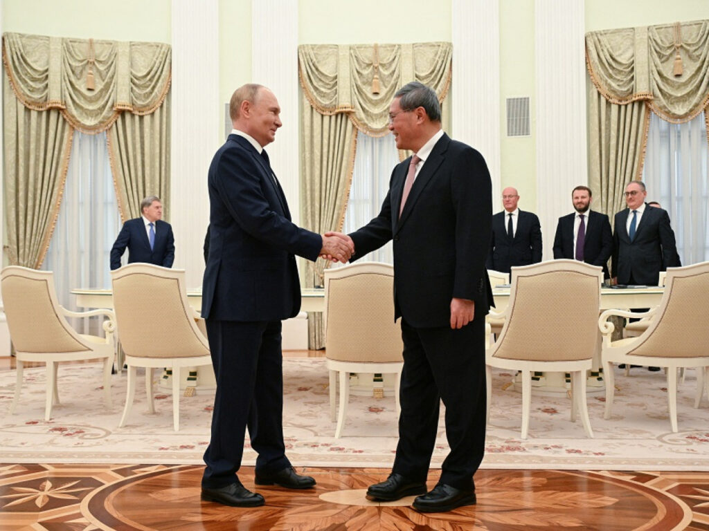 國務院總理李強在莫斯科與俄羅斯總統普京會面。