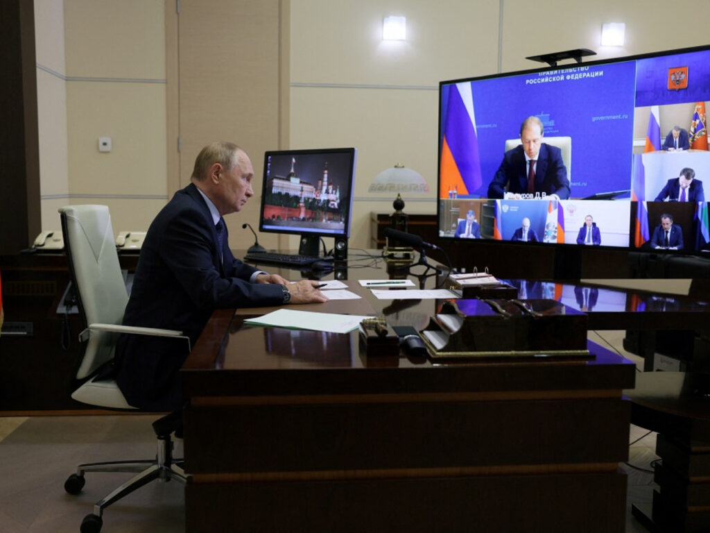 普京在主持召開邊境地區形勢會議,指烏軍試圖攻擊庫爾斯克核電站。(路透社)