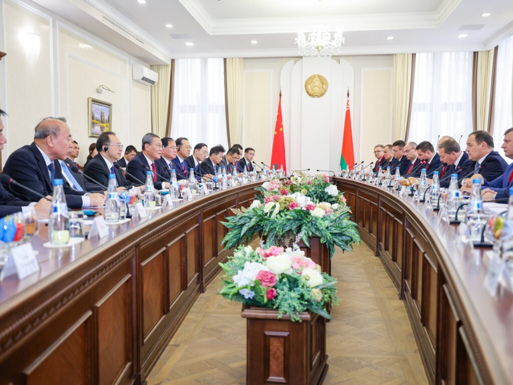 國務院總理李強在明斯克,同白俄羅斯總理戈洛夫琴科舉行會談。雙方簽署聯合公報,以及共同見證簽署共建「一帶一路」合作、服務貿易與投資等領域多項雙邊合作文件。