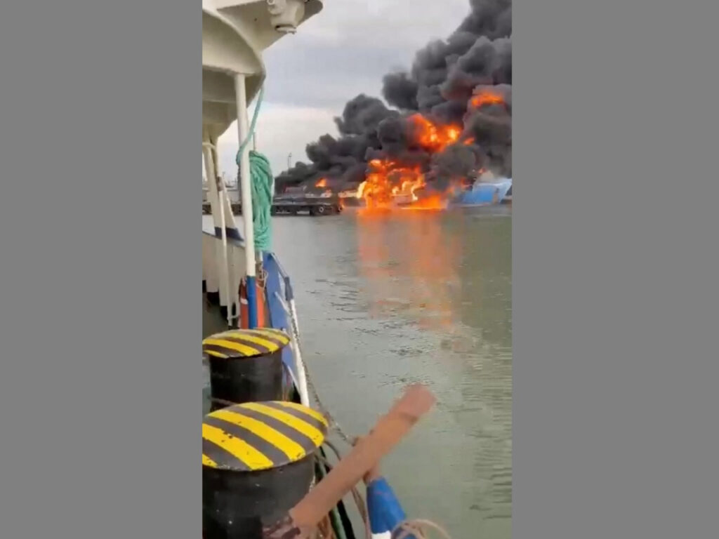俄羅斯克拉斯諾達爾邊疆區高加索港一艘載有30個油箱的船隻遭襲擊後沉沒。