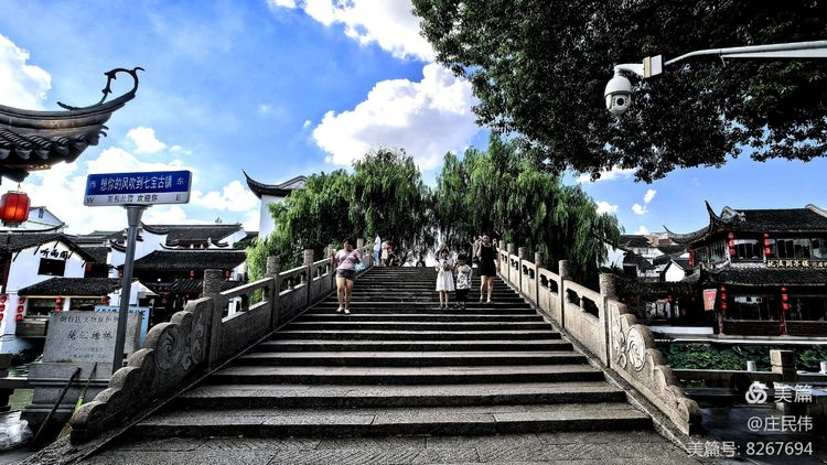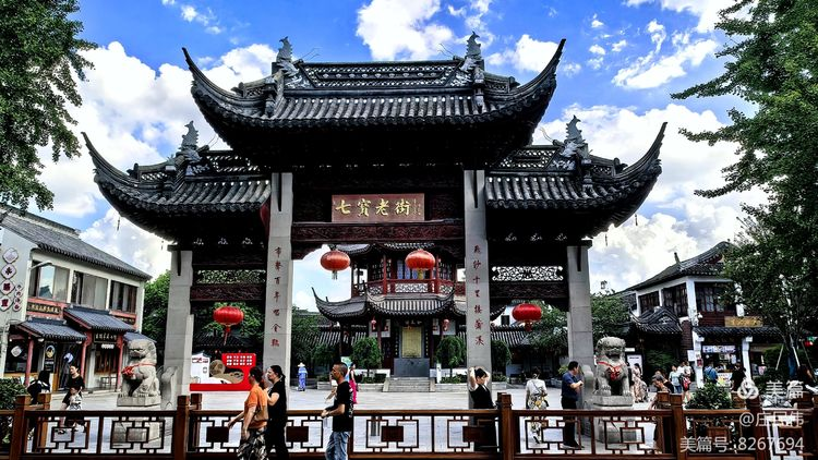 七寶古鎮初建於東漢,形成於北宋,在明清時期達到其發展的頂峰。七寶古鎮是一座有江南水鄉自然風光,悠久人文內涵的歷史古鎮,民間傳說七寶當地有七件寶物,分別是飛來佛、氽來鐘、金字蓮花經、神樹、金雞、玉斧、玉筷,故七寶鎮得名源於此。