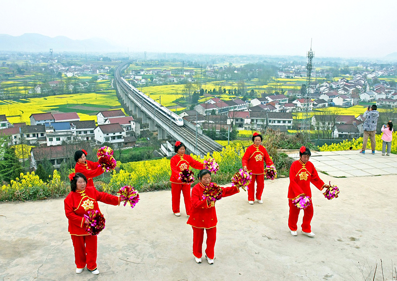 作品簡介:春天,油菜花開,風馳的高鐵,幾位老人正在翩翩起舞。