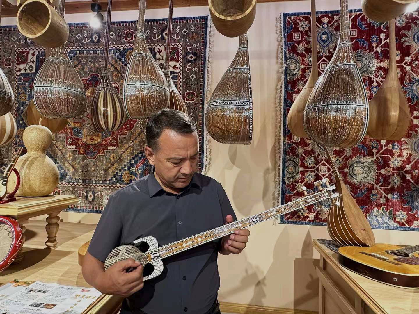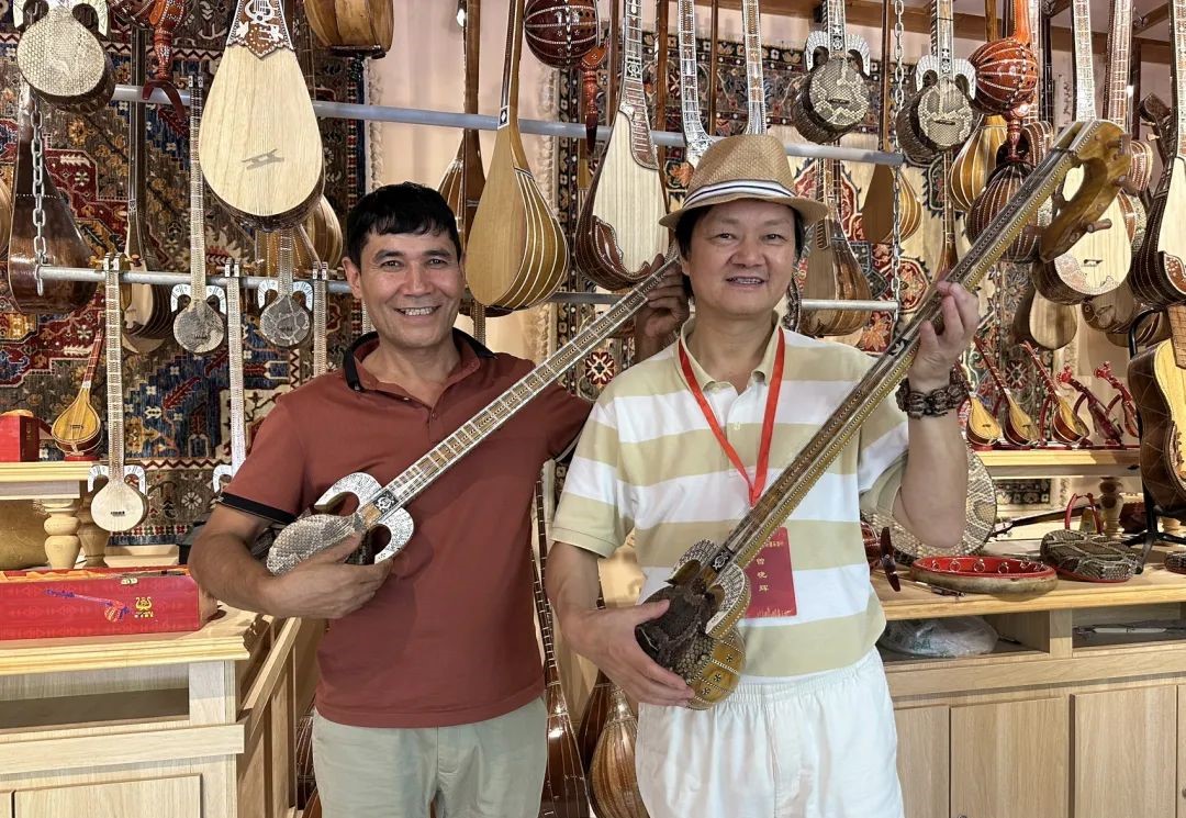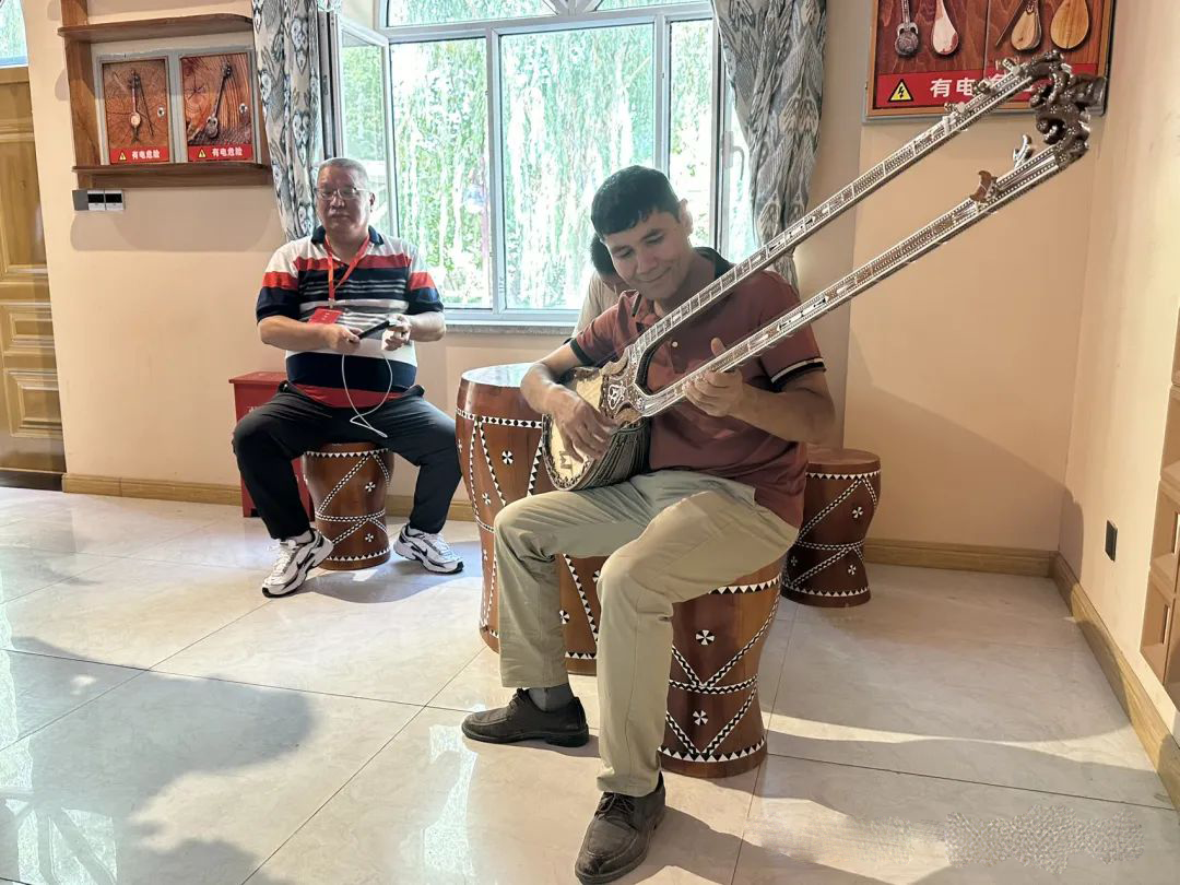 走進樂器村,耳畔傳來陣陣弦動聲,仿佛在訴說著古老的故事。工匠們在手工坊中忙碌,鉋子、鑿子、砂紙在他們的指尖輕舞,發出悅耳的聲響。每一種樂器,都蘊含著工匠們的智慧與心血。應我們的邀請,一位工匠輕盈地彈奏起熱瓦普,悠揚的旋律在空氣中流淌,他臉上的笑容如同樂曲般動人,那是對音樂的熱愛,更是對民族自信的彰顯。