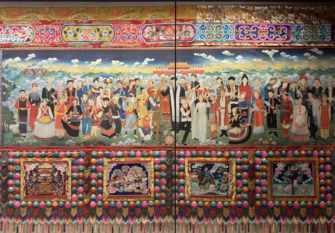 《中國藏族文化藝術彩繪大觀》畫卷以藏族歷史和藏傳佛教各教派源流為主線,展現了藏族人民對宇宙和地球形成、人類產生及社會變化的獨特理解。它融合了宗教、文化、藝術、醫學、建築、天文、地理、習俗等多種元素,真正達到了真善美的高度統一,而非簡單的圖案堆砌。