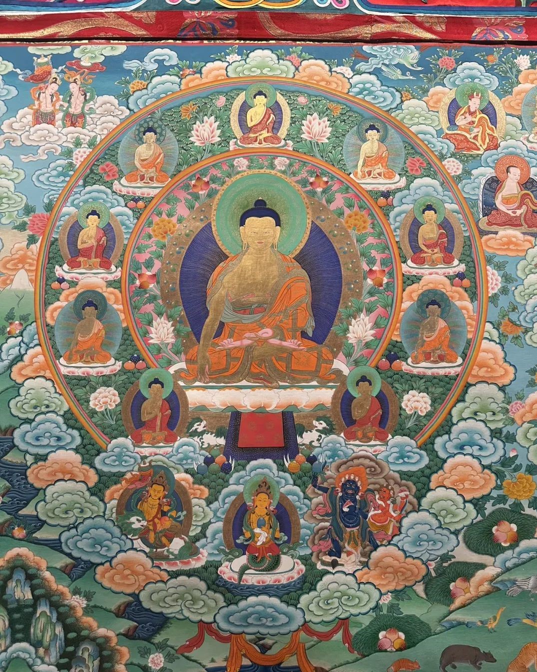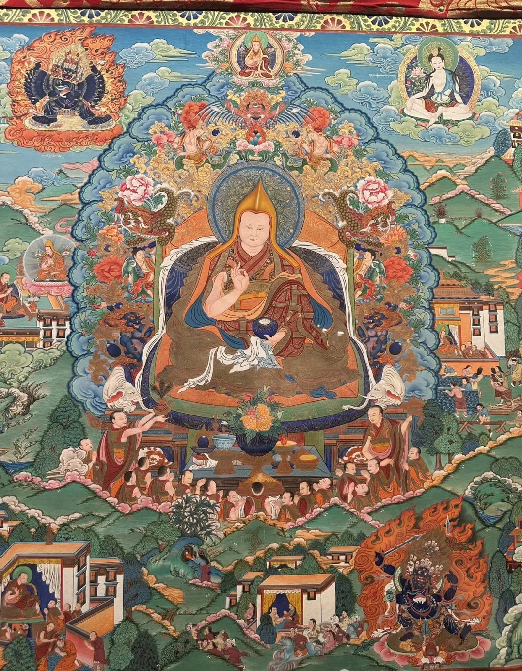 才讓三智介紹,這幅畫卷由當代著名唐卡工藝美術大師宗者拉傑歷時27年設計策劃,五省區的400餘位頂尖工藝美術師協力合作,歷時4年才最終完成。這樣的宏篇巨制,實屬絕無僅有,令人歎為觀止。