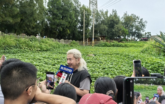 ▲陳柏菁(布魯斯BLUES)接受兩岸媒體聯合採訪。