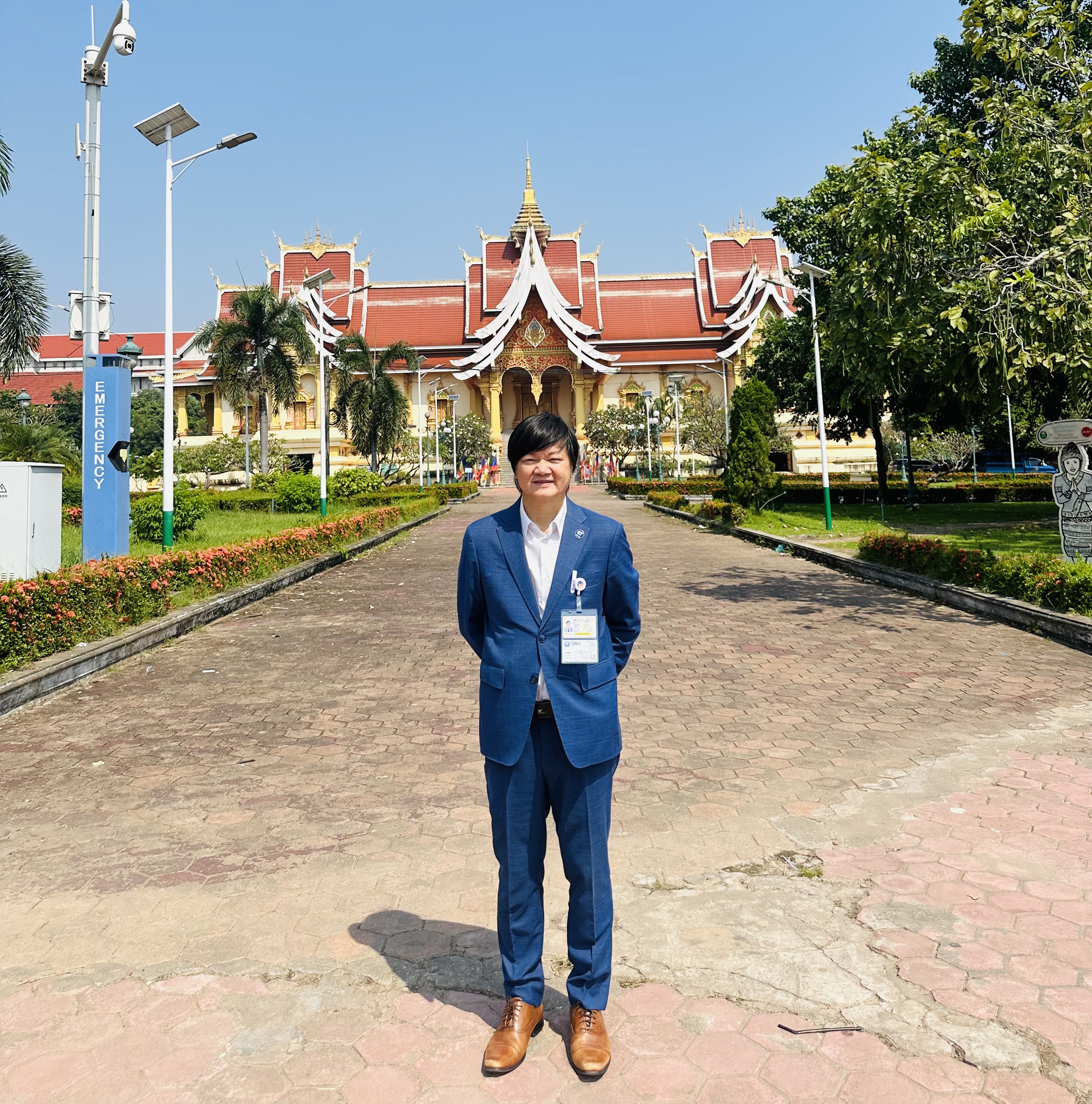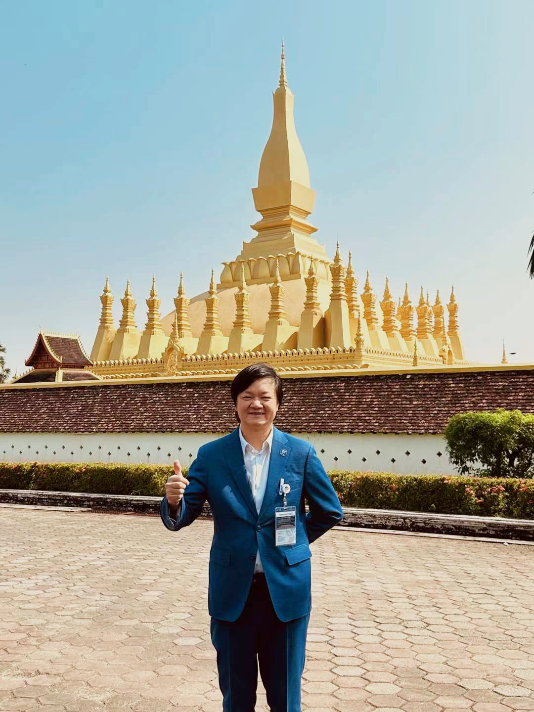 在塔鑾的迴廊下,我靜靜游走,思索著這些流動的歷史、信仰與文化。就在此時,跟我的司機在外面沒有進來,於是我想自拍留念。正當我尋找合適的角度時,一位帶著燦爛笑容的攝影師走了過來,他的熱情如同陽光般溫暖,打著手勢示意要幫我拍照。我心中一陣猶豫,於是打著手勢詢問是否需要付費,他微微搖頭,含蓄而又真誠,讓我感受到老撾人那種樸實無華的友好。