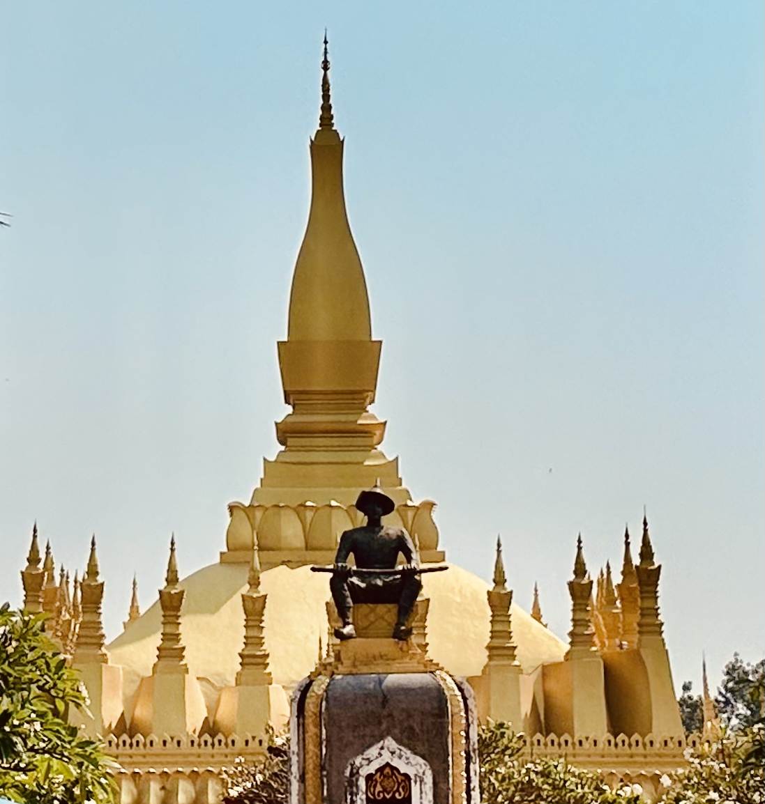 穿過塔鑾前那片寬廣的廣場,我的目光不由自主地被昔日瀾滄國王的雕像吸引,歷史的變遷在此凝結成永恆的瞬間。然而,塔鑾的吸引力令我無法抗拒,我迫不及待地走向它。