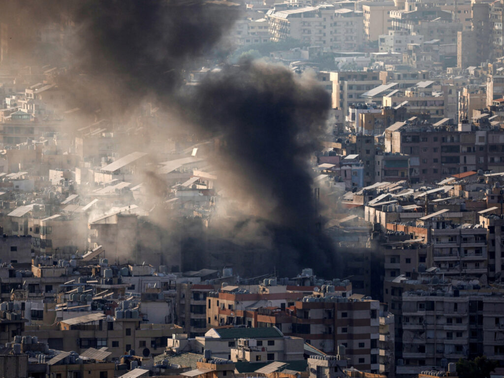 黎巴嫩首都貝魯特有電力設施懷疑遇襲,濃煙升上半空。(路透社)