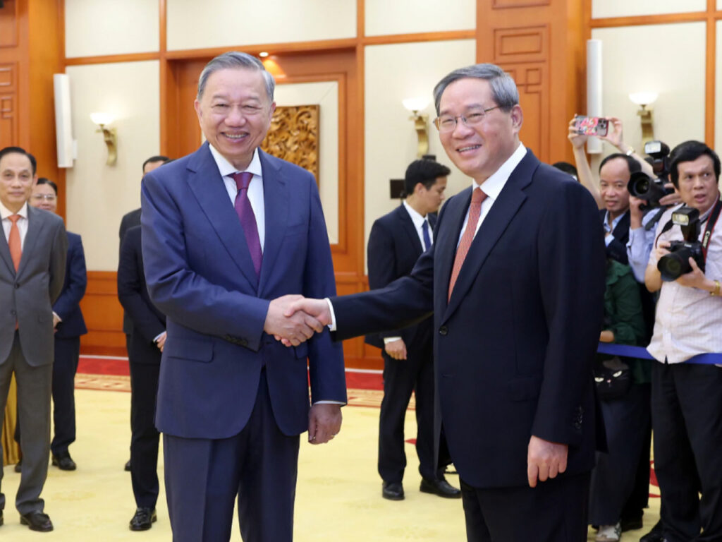 由老撾轉抵越南首都河內,展開今次外訪第二站行程的國務院總理李強,會見越共中央總書記、國家主席蘇林。