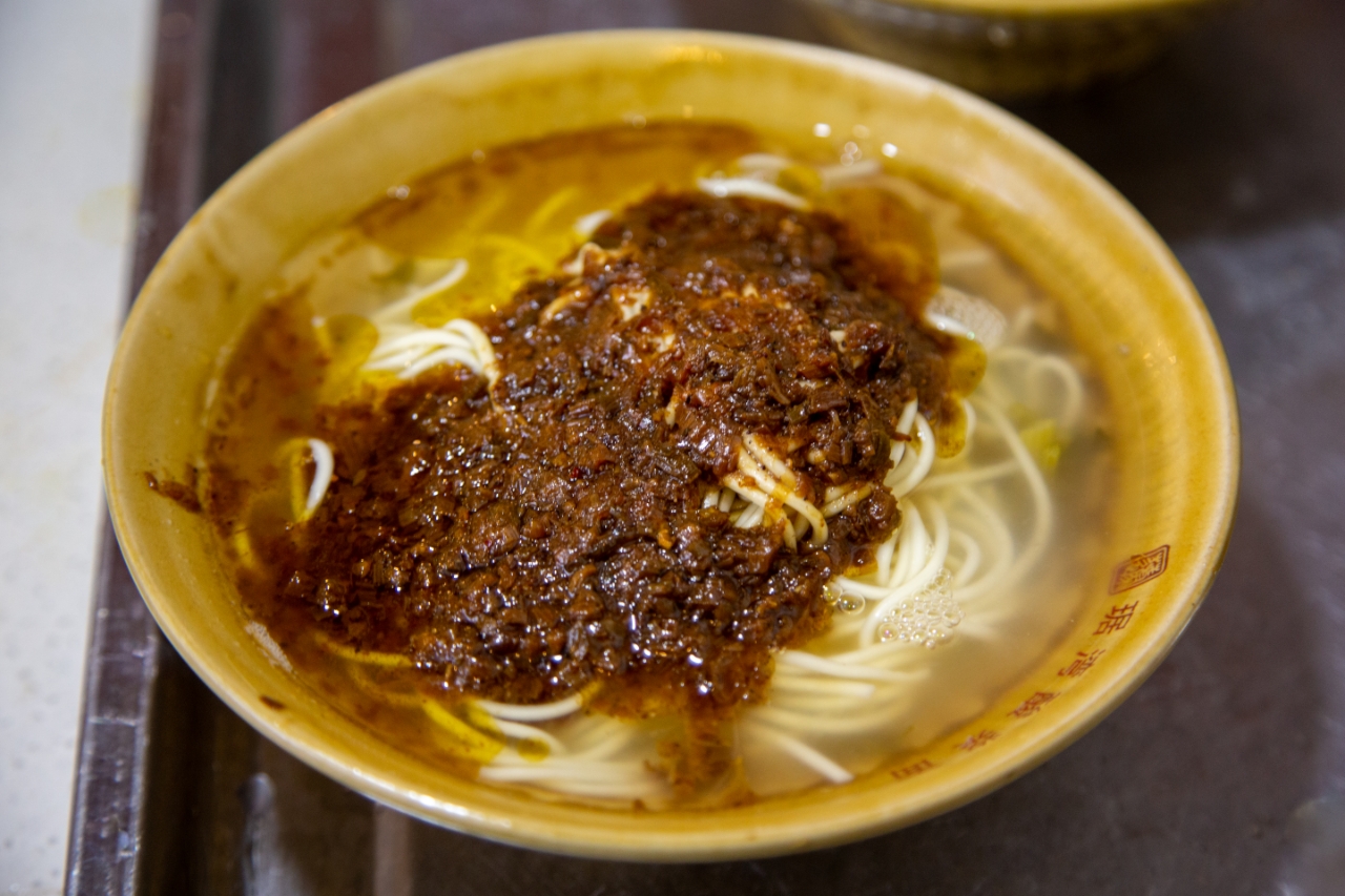 酸漿面是時間淬成的美食。「煸臊子」如此,「泡酸漿」亦然。將少量面粉、食用堿煮沸,下入芹菜汆燙,儲入陶缸,靜候一周至半月發酵變酸。琚興波的面館裏擺放著四個陶缸,見證著酸漿發酵的過程。檢查時,他戴上口罩,小心翼翼揭開缸蓋。「一旦有油星、生水進入酸漿,就會腐敗浪費,因此平時格外小心。」琚興波說。