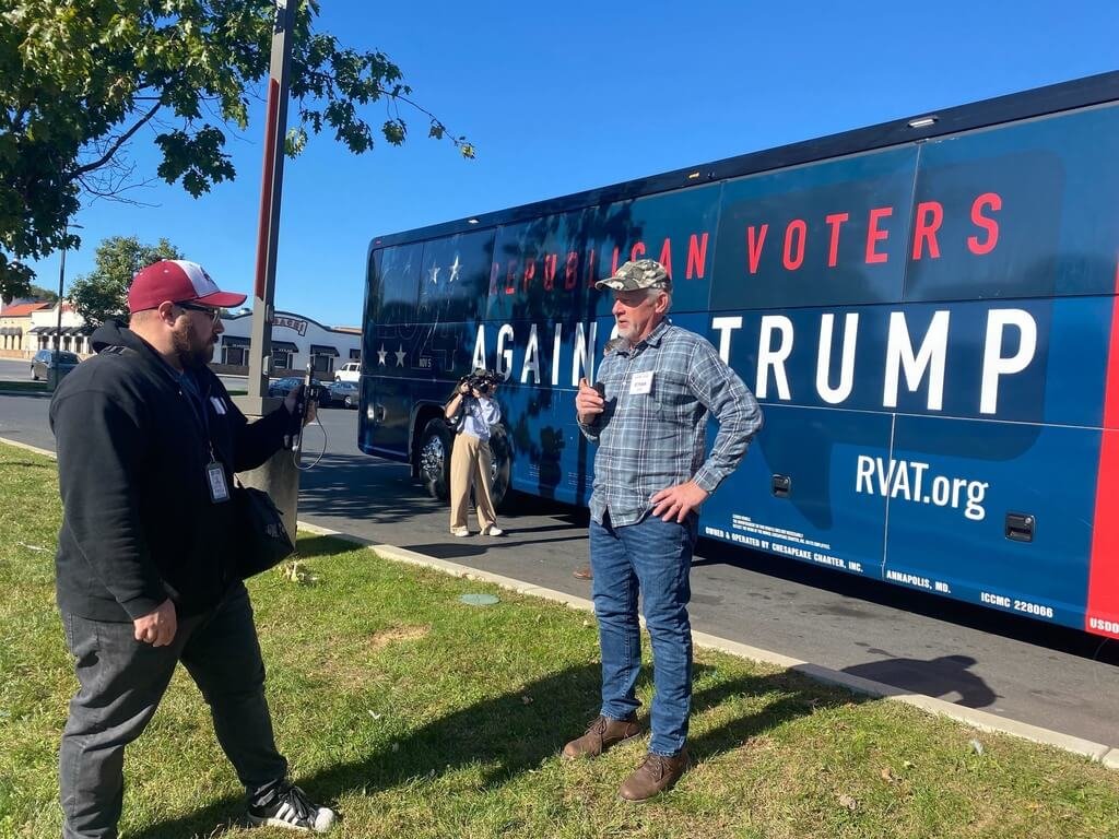 反對川普重返白宮的共和黨選民組成「共和黨選民反對川普」運動,剛結束搭巴士幫賀錦麗拉票的行程,圖為日前在賓州費城。(「共和黨選民反對川普」提供)中央社記者石秀娟華盛頓傳真 113年10月28日