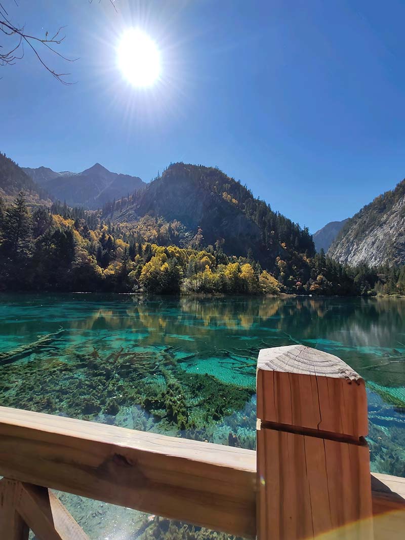 作品简介:於 2024 年 10 月 22 日游走四川九寨沟时看到四週的山水美景,感觉处处都是生机勃然,顿然享起这首诗:「金秋九寨蓬生机,茁庄成长千万里!」。实在不由得讚叹大自然对生命的眷顾!