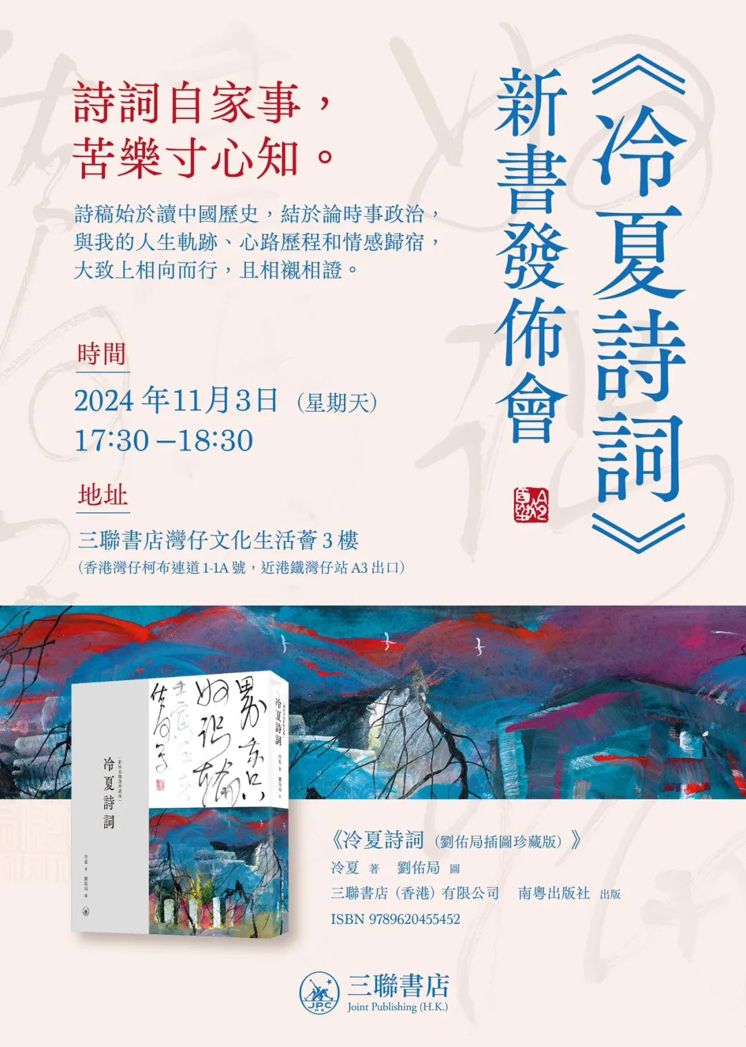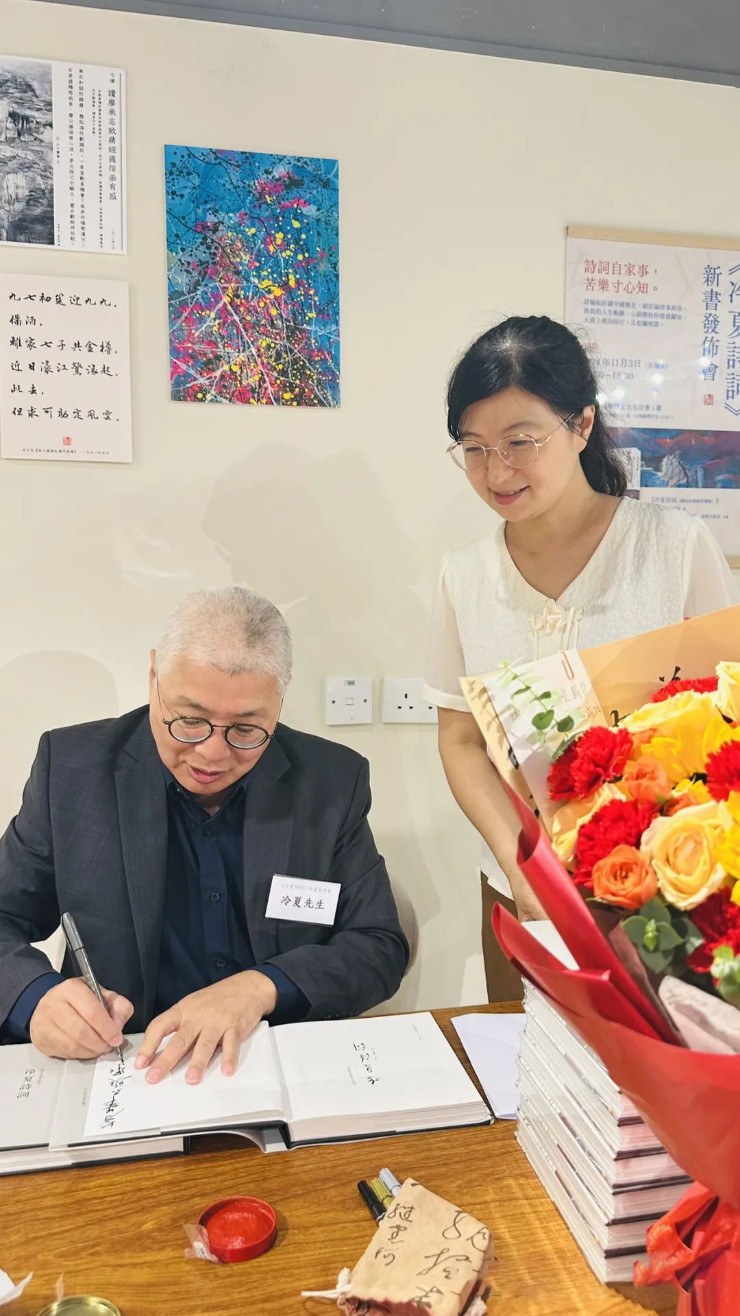 在這樣一個迷人的時刻,灣仔三聯書店的溫馨氛圍為香港的傍晚增添了一份文化氣息。書香四溢,熱烈的交談聲宛如城市的旋律,訴說著它的故事。冷夏先生的《冷夏詩詞》發佈會在此背景下如約而至,帶領嘉賓們走進他的詩意世界。