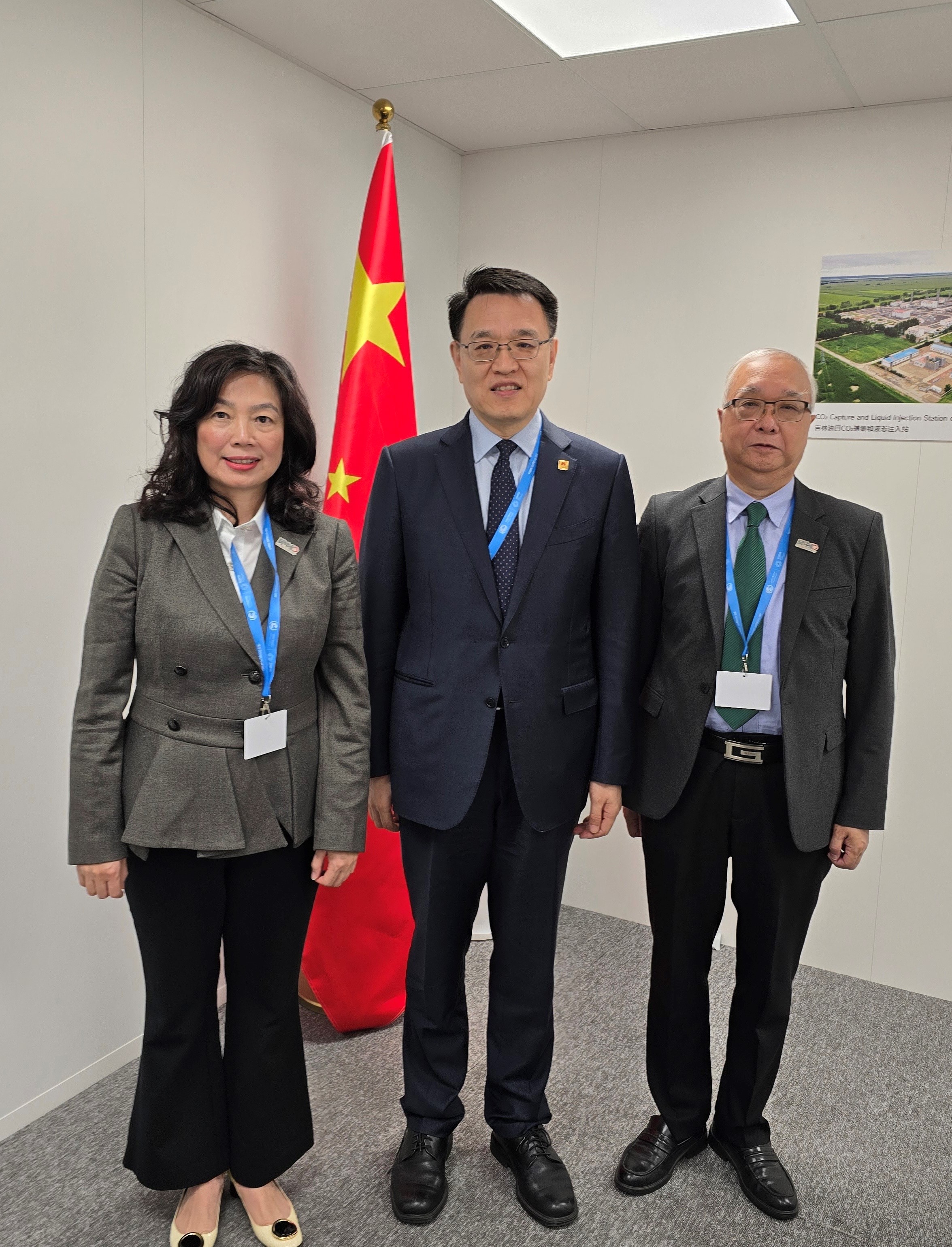 昨日(阿塞拜疆時間十一月十二日)上午,謝展寰和甄美薇與中國代表團團長趙英民進行會面,就氣候變化大會的進展、國際碳市場,以及香港特別行政區政府應對氣候變化的工作交換意見。