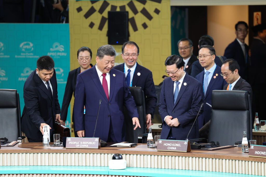 香港行政長官李家超在秘魯出席APEC亞太經合組織領導人非正式會議。李家超的位置安排在國家主席習近平的左邊,兩人在會議前短暫交談。越南國家主席梁強更主動走到習近平坐位旁邊,與習近平握手和交談,並與李家超握手打招呼。