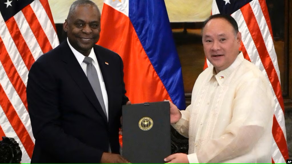 菲律賓和美國國防部長周一(11月18號)在馬尼拉簽署了一項軍事情報和技術共享協議,以期制衡中國在太平洋地區的影響力。中方稱何種合作都不得損害第三方利益。
