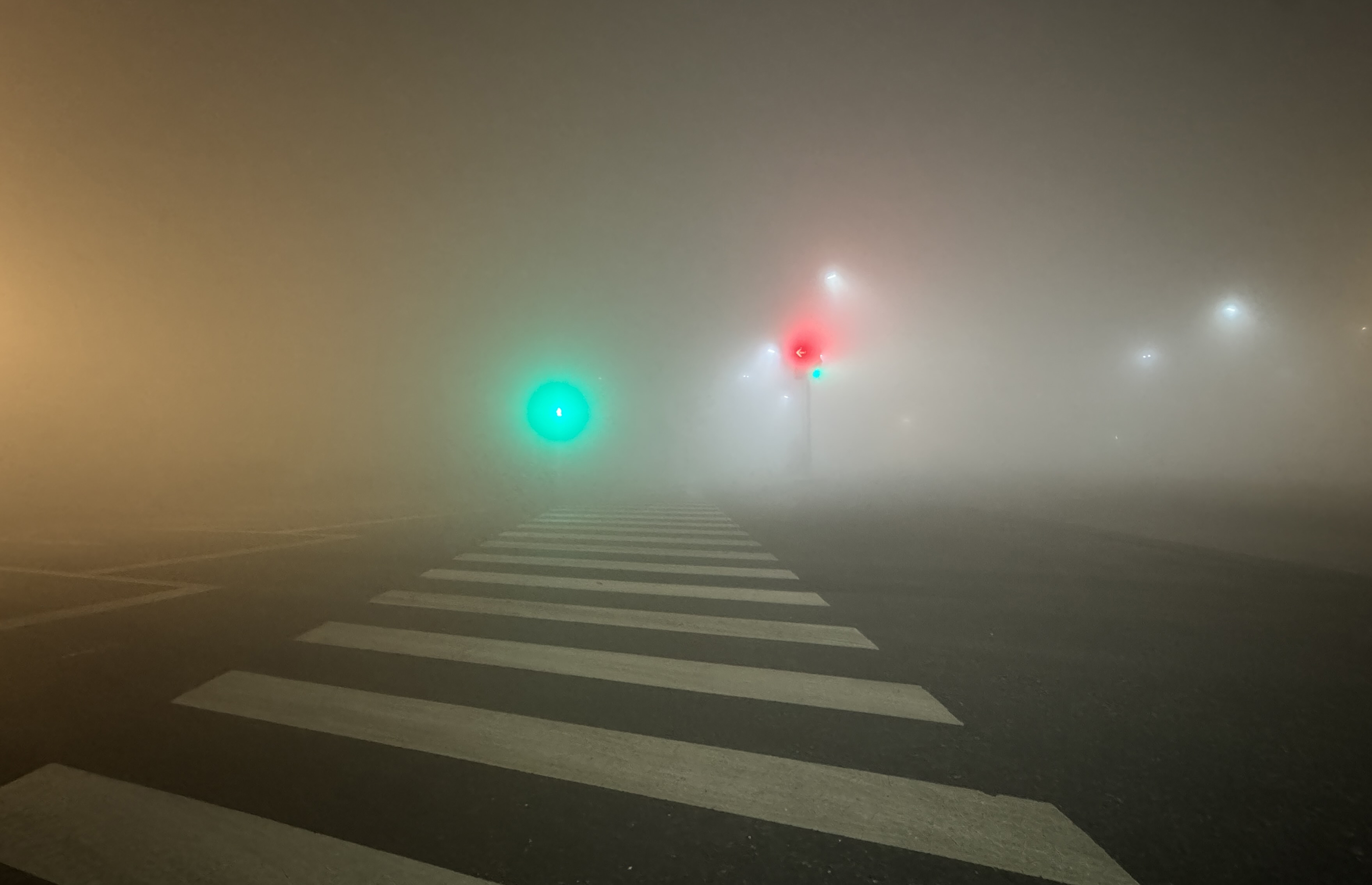 記者當晚在銀川街道看到,在濃霧籠罩下,遠處的景物模糊難辨。在本地網友拍攝的視頻和照片中,霧氣成團塊狀,人行道另一側除信號燈外已難以看清。