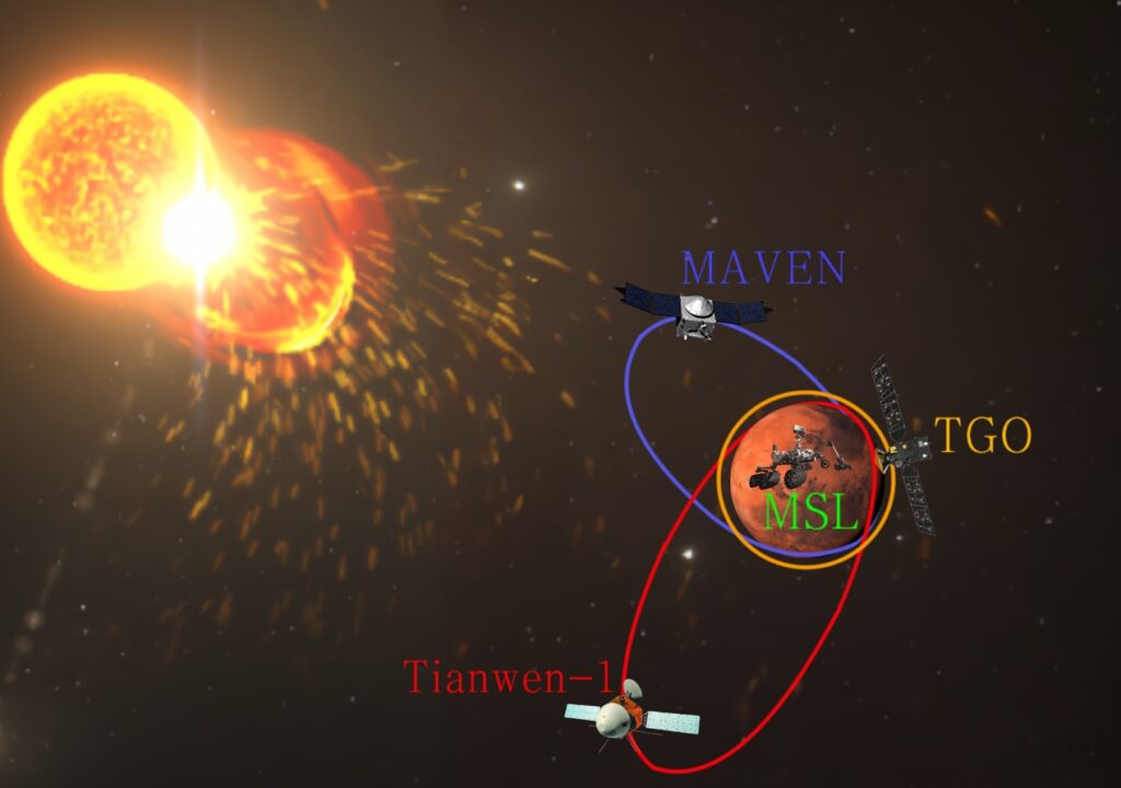 合作團隊介紹說,2021年11月,中國天問一號環繞器進入火星科學任務軌道,其搭載的能量粒子分析儀開始探測火星空間的粒子通量。2022年2月15日,能量粒子分析儀觀測到一個流量和能量極高的太陽高能粒子事件。該事件同時被歐洲空間局的微量氣體軌道飛行器、美國航空航天局的火星大氣和揮發性演化軌道器以及火星表面的好奇號火星車探測到,火星空間首次有如此多的探測器同時探測到同一個太陽高能粒子事件。