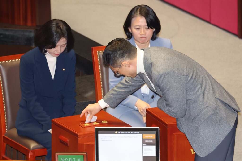 (中華新聞通訊社/中華時報12月7日訊)韓國國會今天表決總統尹錫悅彈劾案,因為執政黨國民力量黨大部分議員離席,國會議長延至晚間9時30分(香港晚間8時30分)左右宣布投票結果,投票數僅195票未達法定人數,彈劾案沒有通過。