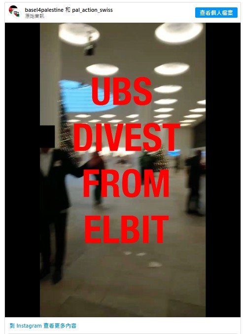 巴塞爾巴勒斯坦賬戶在周五發布的一段剪輯顯示,活動人士還在 11 月沖進瑞銀銀行分行,散發傳單、呼籲抵制,並抗議該行支持以色列在加沙和西岸的行動。