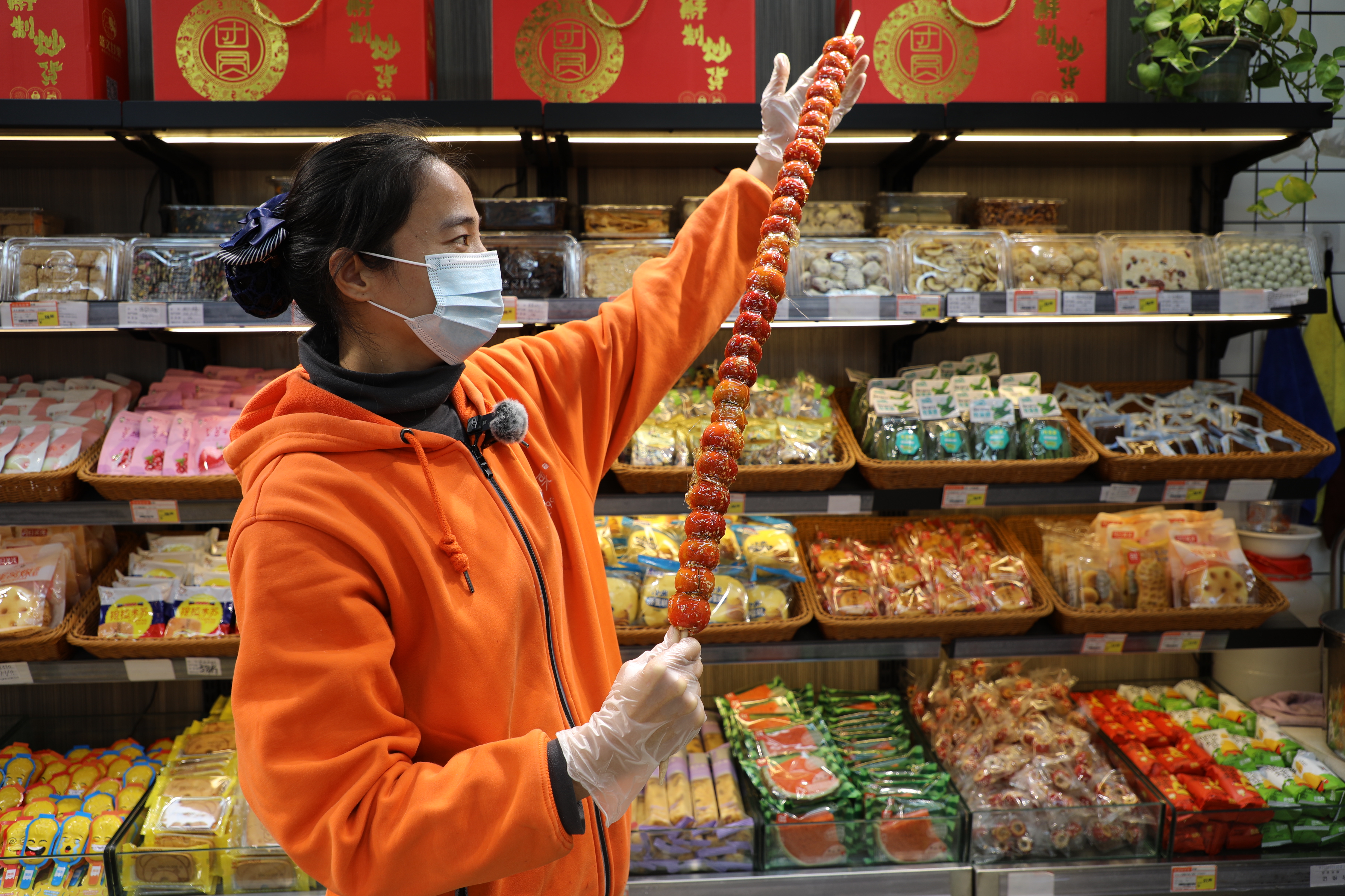 “‘1米糖葫蘆’製作流程複雜,需要提前1小時預訂,以外賣訂單為主。”濟南一家糖葫蘆連鎖品牌店員初曉靜介紹說,該店推出“1米糖葫蘆”已有半個多月,銷量可觀。抖音平台顯示,該連鎖店已線上售出各類“1米糖葫蘆”超15萬單,單價在28.9元(人民幣,下同)到108元不等。