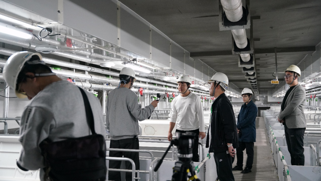 韓國代表團在廣州南沙智能化養豬場參觀交流。