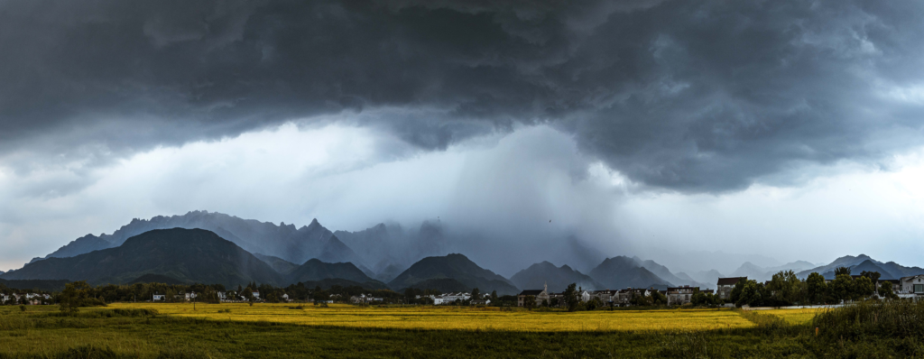 作品簡介:2022年夏一次自駕遊途經九華山,突遇罕見特大暴風雨,這是暴雨來襲前烏雲籠罩九華山的壯觀景象。