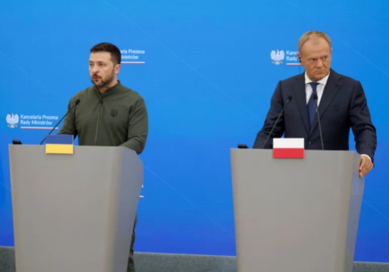 澤連斯基在烏克蘭西部城市利沃夫與波蘭總理唐納德·圖斯克舉行的聯合新聞發布會上表示,還可以討論在戰場和地緣政治上加強烏克蘭的問題。