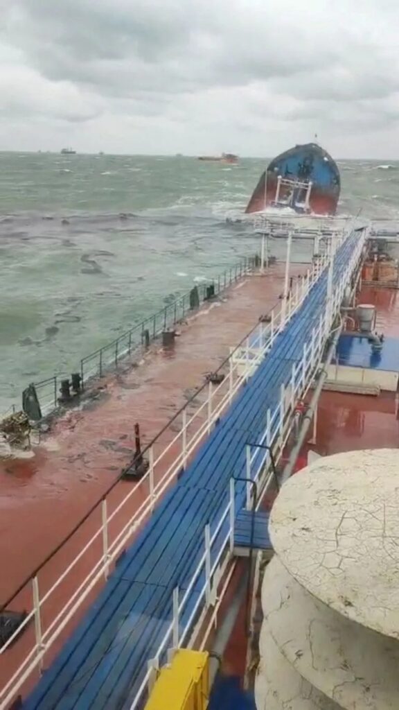 照片:黑海漏油周末,兩艘油輪在暴風雨中嚴重受損,泄漏的石油被沖上了俄羅斯黑海沿岸“數十公裡”的水域。