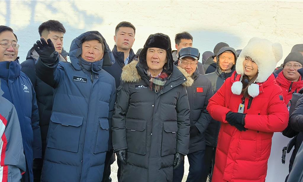(中華新聞通訊社/中華時報12月19日訊)前總統馬英九第三次出訪大陸,19日上午參訪即將開幕的第37屆哈爾濱太陽島國際雪雕藝術博覽會。全程約25分鐘,參觀包含如兩岸一家親主題、青花瓷造型的雪雕作品,與大陸國台辦主任宋濤、台青一起嘗試拿雪雕器具打磨雪塊,笑稱「很像台灣夏天在做剉冰」,做久了回台灣可以開冰果店,隨後依景念誦柳宗元的《江雪》詩句。宋濤提醒注意保暖,他也回說「熱情的人是不怕冷的」。