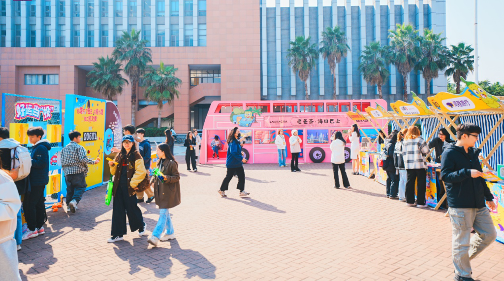 在活動現場,創建了沉浸式互動場景,海口文化“閃現”在大學校園,十分吸引人。其中,精心設計的互動體驗環節成為亮點,通過 “海口地標猜猜猜”“旅文地標蘿蔔蹲” 等趣味遊戲,將海口的著名景點、文化地標巧妙融入其中,使同學們在娛樂遊戲化過程中深入瞭解海口的文旅資源,感受其獨特魅力。同時,具有海口特色的老爸茶巴士打卡活動以及精彩的文藝表演,讓校園內洋溢著濃郁的海口風情,吸引了眾多大學生駐足參與,現場氣氛熱烈非常。