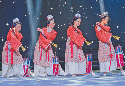 在阿联酋华侨华人第十一届春节联欢晚会上,华侨华人和当地民众共同演绎中国古代迎春场景。