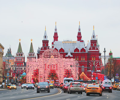 俄罗斯莫斯科市中心马涅什广场日前亮起“中国红”,庆祝中国传统新年。本报记者 隋 鑫摄