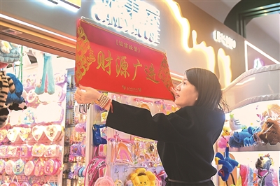 新春开市第一天,义乌国际商贸城的商户在店铺门口张贴新春横幅。新华社记者 黄宗治 摄
