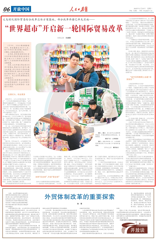 “展望今年中国国际贸易走势,尽管全球经济面临诸多不确定性,贸易保护主义有所抬头,但中国凭借强大的制造业基础、不断优化的营商环境以及积极推动的贸易自由化举措,有望保持稳定增长。”张建平说,“中国经济韧性强、潜力大,义乌此次改革将为中国贸易高质量发展注入新动力,带动中国国际贸易在全球贸易格局中不断提升地位,拓展更广阔的发展空间。”(记者 孔德晨)《人民日报海外版》(2025年02月25日 第 06 版)
