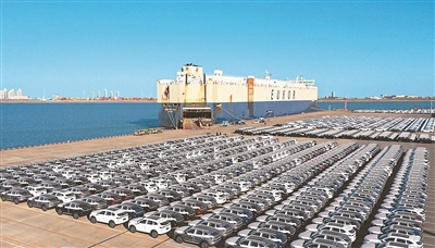 近日,来自京津冀地区的超4000辆国产自主品牌汽车从天津港环球滚装码头启航,驶向南美等海外市场。新华社记者 赵子硕摄
