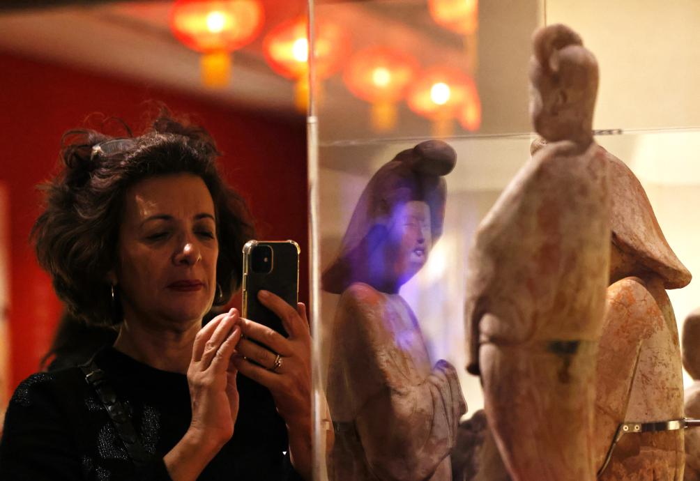 2024年11月18日,在位于法国巴黎的吉美国立亚洲艺术博物馆,一名观众参观“中国·唐——一个多元开放的朝代(7至10世纪)”展览。新华社记者高静摄